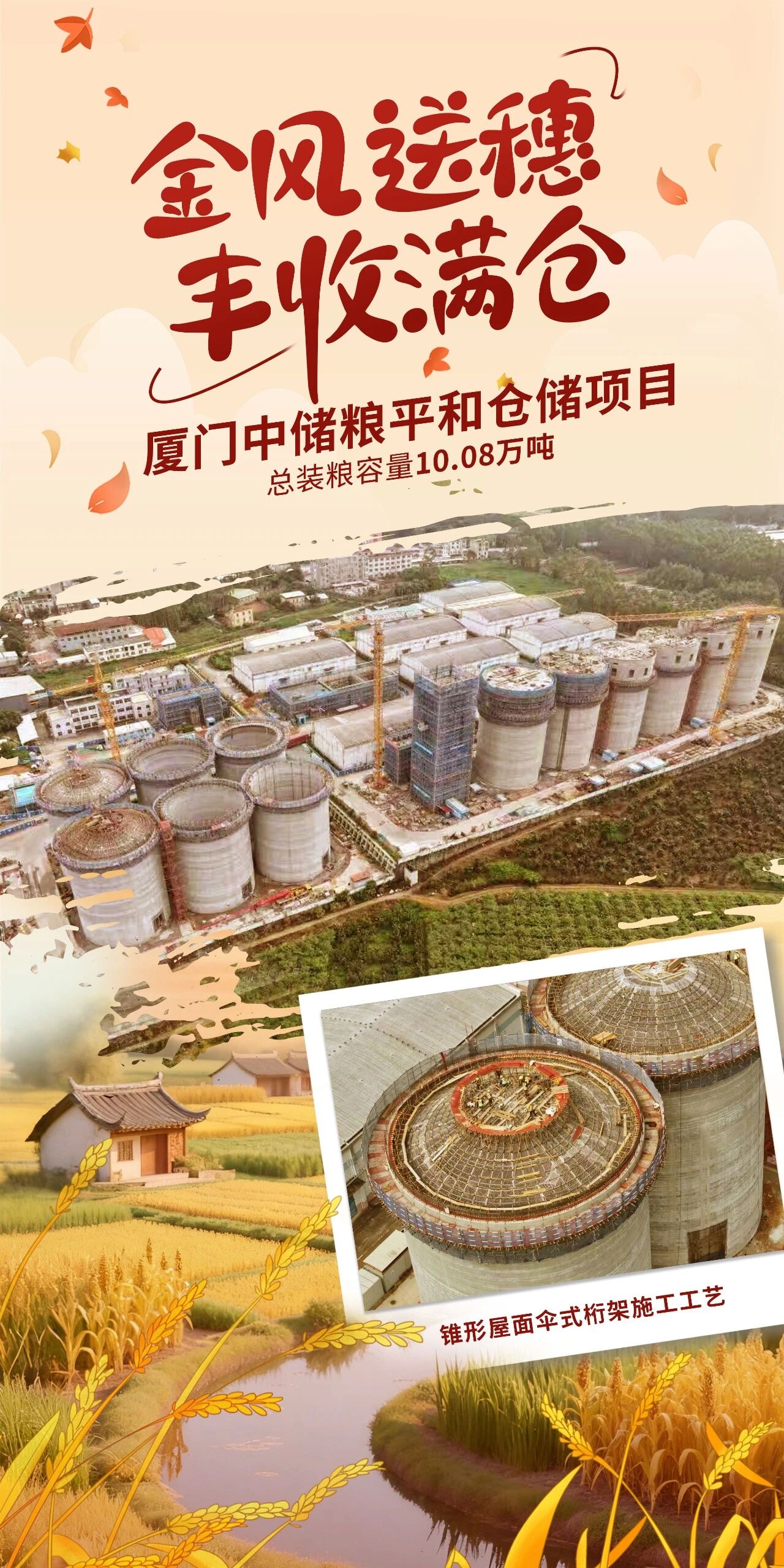 天地有声,丰年有响。今天是第八个中国农民丰收节,多年来,中国建筑旗下中建三局匠心筑造一批粮储工程为粮丰农稳、颗粒归仓,捍卫粮食安全、建设农业强国贡献中建力量,一起来看大国粮仓里的匠心工艺。