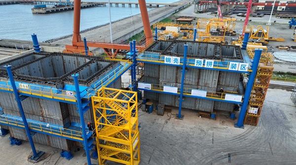 狮子洋大桥钢壳节段在制造厂内进行预拼装